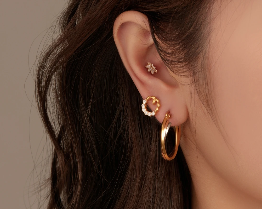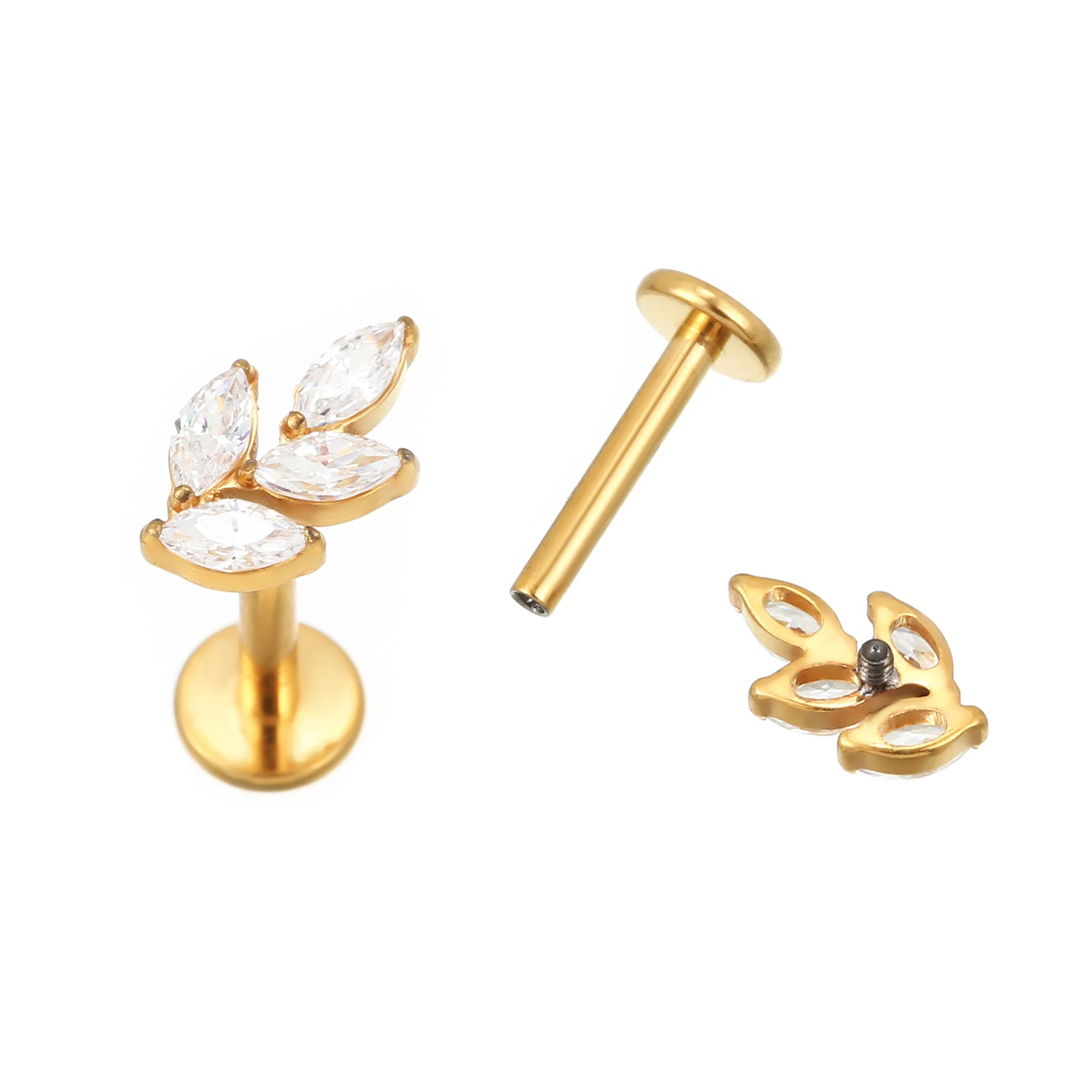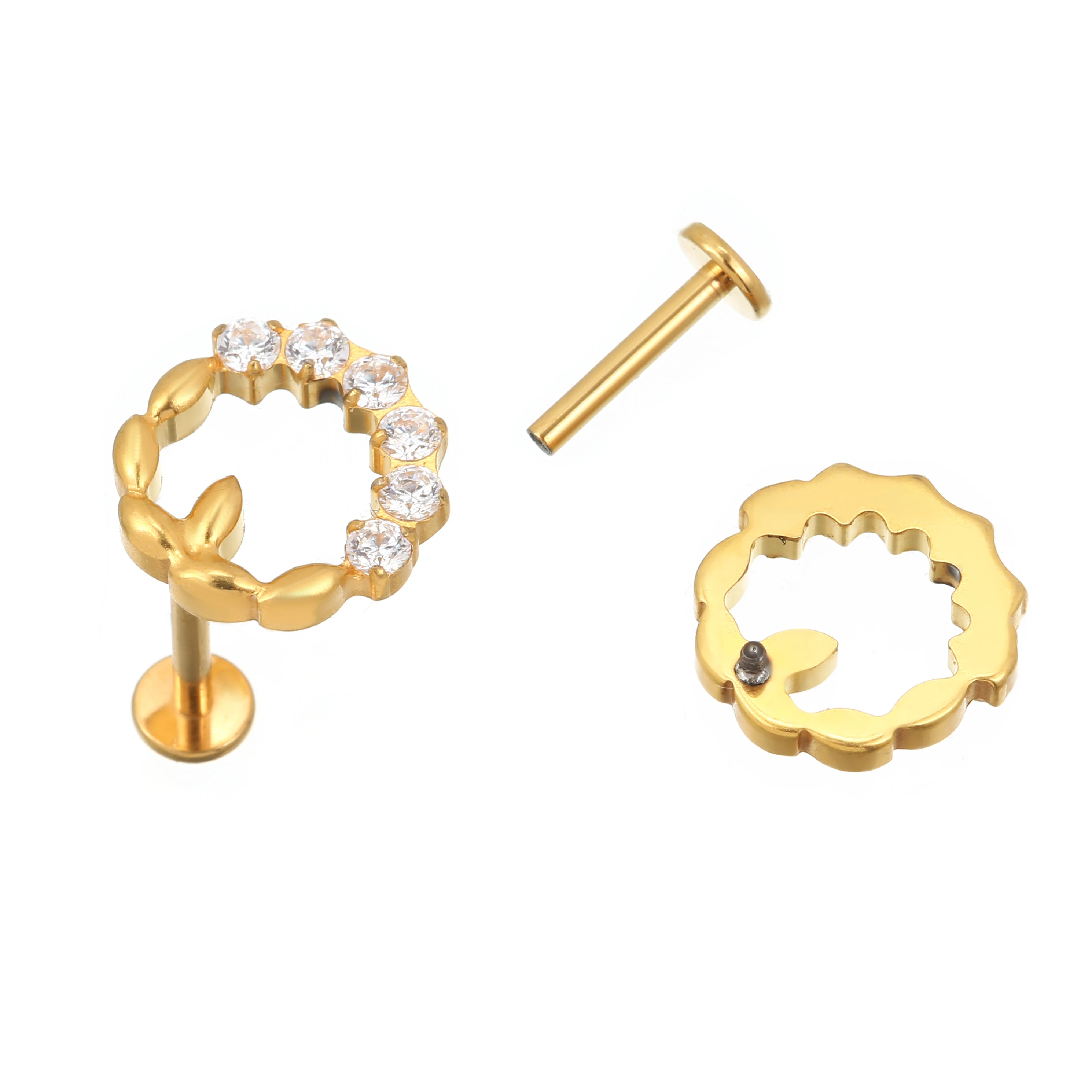 High Quality Piercing Jewelry Titanium Zirconia Stones Anti-Allergy 18K Gold Plated Titanium Stud Earrings for Wedding and Gift